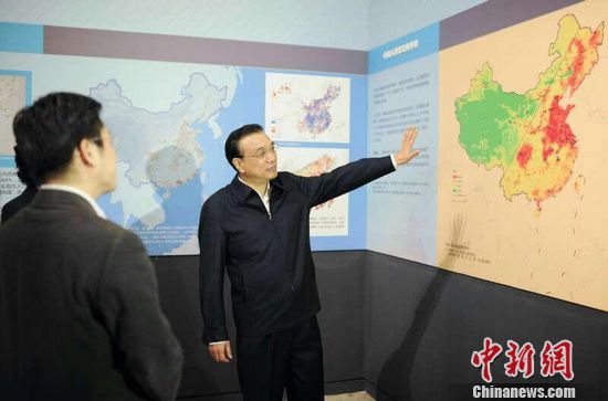 中新网北京11月28日电 李克强27日在国博参观人居科学研究展时,指着中国地图上的“胡焕庸线”说,我国94%的人口居住在东部43%的土地上,但中西部如东部一样也需要城镇化。我们是多民族、广疆域的国家,要研究如何打破这个规律,统筹规划、协调发展,让中西部百姓在家门口也能分享现代化。(记者 欧阳开宇)