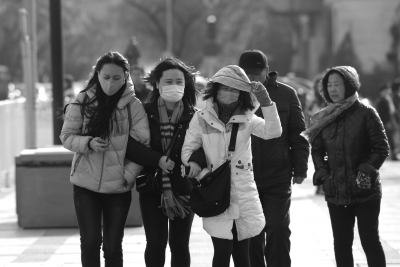 昨天大风袭京,路人行走感到困难。京华时报记者谭青摄