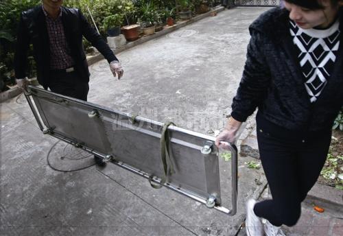 到了老人公寓,司机将运尸车开到附近空旷处停下。老丁打开后备厢搬出担架,不忘嘱咐记者:待会千万千万不能乱敲门,也不要问“这户人家”在哪,这是会让很多人忌讳的事。老丁说,一次他们到一户人家接尸,运尸车就停在逝者家楼下,就在上楼的一会儿工夫,车胎被人放了气。