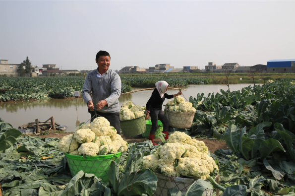龙湾新闻网讯 昨天是永兴街道大塘村冬季花菜开始采摘上市的日子,记者在菜农范力承包的200亩菜田看到,农民们正在忙着采摘和运输花菜,预计今年亩产3000斤,总产量达60万斤左右。叶晓东摄