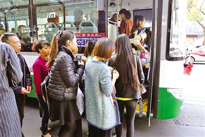 人民东路移动营业厅前的公交站点,不仅途经的公交车多,等车的市民更多。昨天中午,文明观察员在此观察,看到一辆55路公交车停靠车站后,车门刚一打开,就有一个身穿黑马甲的市民挤过一个怀抱小孩的男子,抢先一脚挤进了车门。随后而来的5路车靠站时,由于要上车的人较多,车门被团团堵住,谁都不让谁。