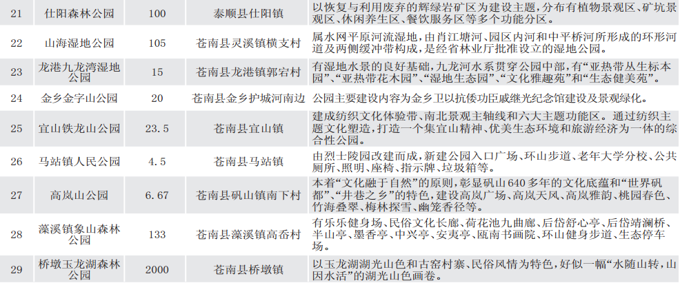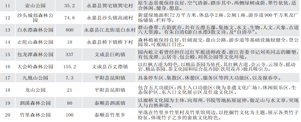 森林公园和森林绿道建设是2012年市委市政府制定的民生工程,任务期为3年,计划新建提升90个森林公园。在中心城区建设以三垟湿地公园和大罗山为“绿心”,以吹台山、五磊山、西郊、白水漈、胜美尖等森林公园为“绿环”环都市森林休闲圈,8个县(市)级城区和50个中心城镇开展“一镇一森林公园”建设计划,形成“森林围城”的格局。包括此次通过验收的在内,三年来共新建提升93个森林公园,这些公园免费对外开放,大大提高了市民生活品质。