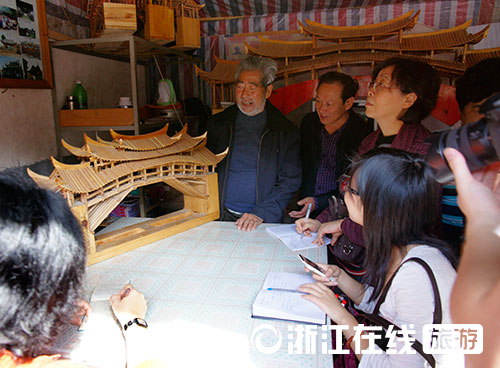 国家级传承人董直机正在向专家、学者解说木拱桥传统营造技艺