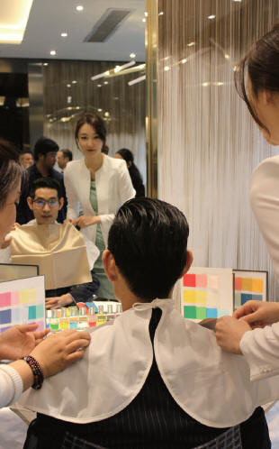 韩国色彩顾问、礼仪培训专家朴银熙为VIP客户做色彩分析。