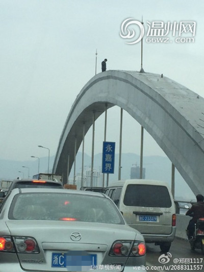 瓯江三桥上一男子欲跳江轻生 市民围观引发堵塞