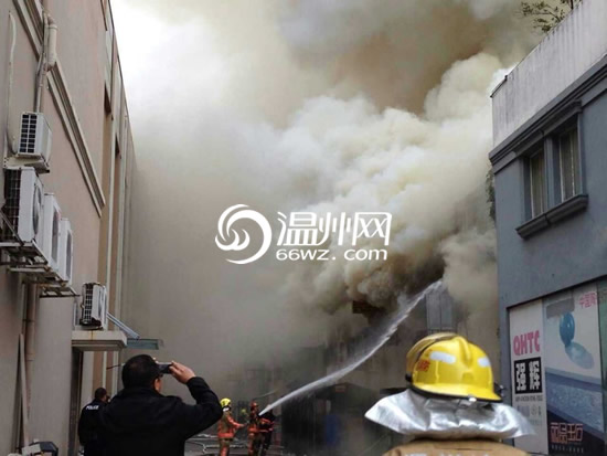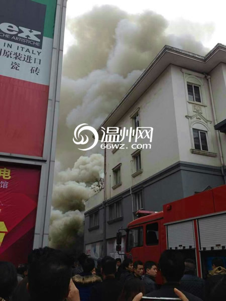(记者温婉)12月11日上午,温州市龙湾区富春江路一陶瓷品市场附近发生火灾,现场浓烟冲天。