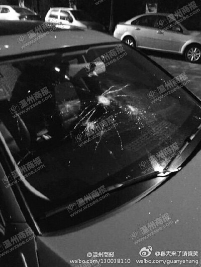 温州市区新田园10多辆车子 风挡玻璃被人砸花