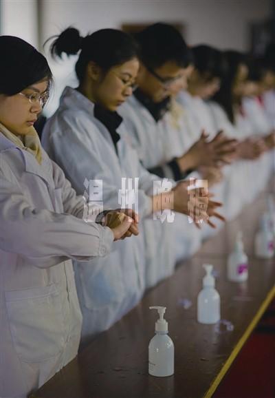 昨天,温州医科大学举行了一场别开生面的中外医学生临床技能比赛,100多名医学生依次排开,分组接受评委的考验。其中一项洗手,必须要在30秒内完成洗手七大步骤。据主办者介绍,这是迄今为止浙江地区规模最大、涉及面最广、参赛选手层次最多的口腔医学专业学生临床技能大赛,优胜者必须30秒内把手洗干净了才能代表浙南地区参加全国比赛。