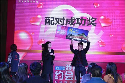 此次活动安排的奖品很丰富。单身男女速配成功,即有机会获得缘分奖,奖品分别为双人韩国游、双人国内游。所有参加活动的单身男女将参与幸运抽奖,奖品为Iphone6、IpadMini、NILIDA高级定制皮鞋、嫁衣工坊婚纱礼服券和九阳料理机等精美奖品。参与现场互动游戏即可获得汽车抱枕、洁丽雅毛巾、电子称、心型打火机、陶瓷调味瓶等百份奖品赠送。(龚钦)