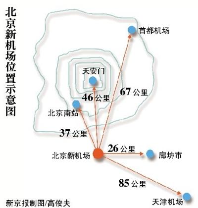 民航局副局长周来振透露,中央近期决定将在几天后进行北京新机场开工仪式。据了解,12月16日,国家发改委下发批复,同意建设北京新机场。新机场位于北京市大兴区榆垡镇、礼贤镇和河北省廊坊市之间,距天安门广场直线距离约46公里,距廊坊市市中心直线距离约26公里。
