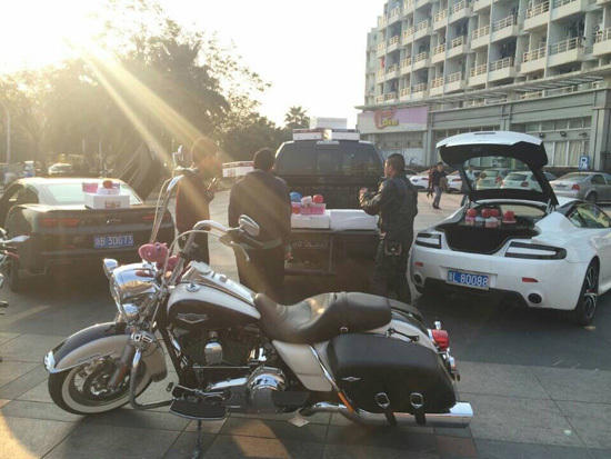 女孩说,摆摊的豪车,都是慈溪、舟山等朋友赞助的座驾,她们有个哈雷群,也讨论准备将卖苹果的钱,以后做公益用。