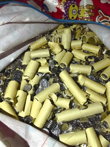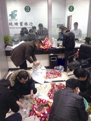 据悉,前天晚上银行的工作人员一直加班到晚上10时许,才将40万元零钱清点完毕。