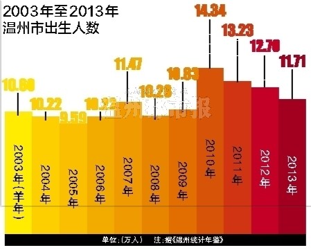 温州也没有出现羊年特别少的情况。记者从《温州统计年鉴》查到,2001年至2013年间的温州出生人数中,2003年(羊年)的出生人数排在第七位,并不比其他年份要少。