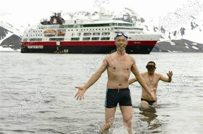 12月31日傍晚,陈建义做了准备活动后,正式下海冬泳。即便现在是南极的夏季,是一年中气温最高的时候,当时的水温也只有0℃左右。陈建义在冰冷刺骨的海里游了10分钟左右。“四周是雄伟壮丽的白色冰川,湛蓝天空倒映在海水中,在这样如画的环境中游泳,这是以前从没有过的体验,当时心情很激动很高兴,真是不虚此行。”昨天已经在返航阿根廷途中的陈建义说起这次独特的南极行仍回味无穷。他表示,虽然已经挑战过了地球的南北两极,但今后他还将会继续进行自我挑战,用实际行动去感受大自然的魅力。
