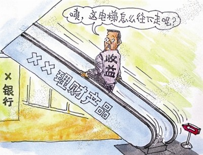 中信银行的一款理财产品,节前的年化收益率为5.8%,昨天在售时,收益率是5.4%。该行工作人员说,再过几天,还会继续下调收益率。