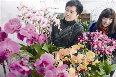 近来杂色系的蝴蝶兰销量有赶超红色系的趋势。蒋文广摄