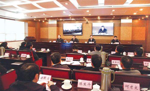 1月5日国土资源部、农业部联合召开视频会议现场。 (周怀龙摄)