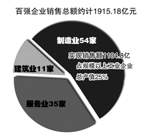 此次入围的54家制造业企业,占全市4313家规模以上工业企业数的1.25%,但实现销售额1104.7939亿元,占规模以上工业企业总产值4418.48亿元的25%,充分显示百强企业的规模和力量。