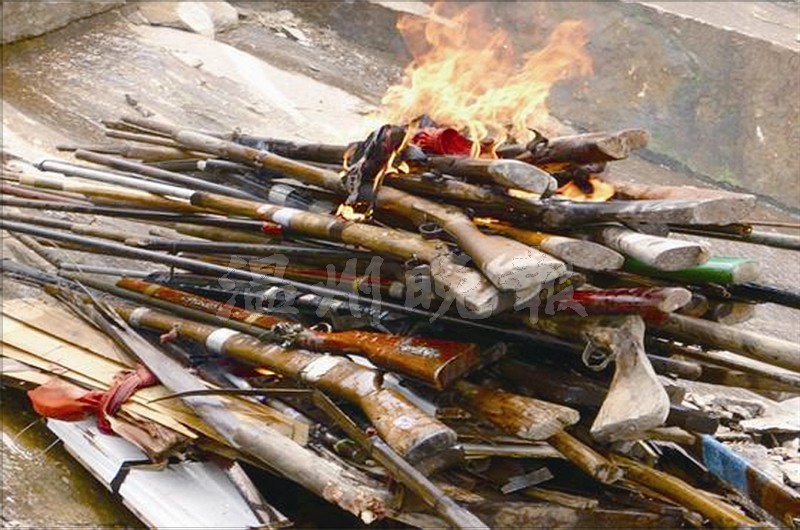 众所周知,我国对枪支弹药及各种管制刀具管理是非常严格的。治安支队一如既往加大对刀、枪、爆等危险物品的收缴工作,并且连续三年让社会治安实现了“零枪响”。