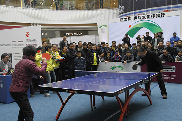 龙湾新闻网讯 日前,“迎世乒·乒乓文化伴我行”温州站在万达广场举行,来自温州本土的12名乒乓“高手”挑战了前乒乓球世界冠军郭跃华。据悉,该活动由国际乒联、苏州世乒赛筹委会发起,在近两个月的时间里陆续走进长三角10个城市,以现场展示和群众互动的形式推广普及乒乓球运动,弘扬乒乓文化。晓东 希赛 摄