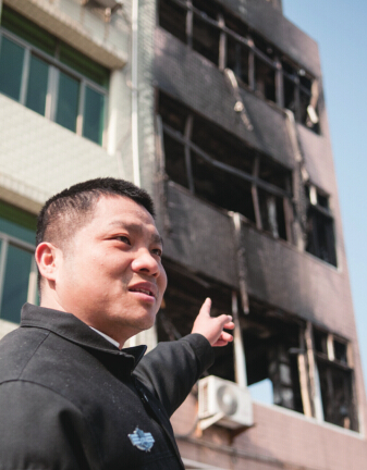 孙凤万的房子,距离火灾现场不远,房子共五层,房龄已有20多年,4年前,他开始将房屋出租。与当地大多数民房一样,孙凤万的房子属于木质结构的通天房,一旦发生火灾,将会形成“烟囱效应”,火势直接蔓延到房子顶部。