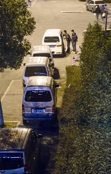 傍晚5时35分,记者开车来到F区门口,之前的面包车都到了这里,记者跟在后面停了下来。不一会儿,就有面包车在记者的车后面停了下来,估计也是看到了陌生的车,这名司机走上前来看了看,欲言又止。