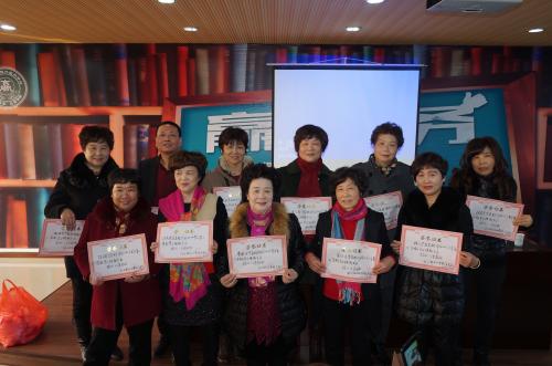 状元桥幸福学堂现有四个班级,平时都是分时教学的,今日难得一聚。结业典礼开始前是幸福学堂四个班级拉歌比赛,大家都互不相让,歌声一阵高过一阵。结业典礼上,乐学班创办人、原状元三小校长林小兰对一学期来的教学工作做了声情并茂的回顾。学员代表陈崇兰和教师代表周立红现场阐发了感人至深的学习和教学体会。大会还表彰了20名本学期优秀学员,优秀学员们拿着红灿灿的奖状,乐呵呵地合影留念。(通讯员蔡红艳)