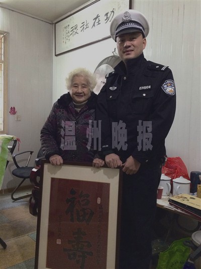 1月11日,是庄阿婆95岁大寿,“关爱抗战老兵温州志愿者服务队”为她摆设了生日宴。散席后,庄阿婆的儿子王老伯在饭店门口拦了一辆出租车,王老伯坐副驾驶座,庄阿婆和两个女儿坐后排,并将志愿者服务队送的一块祝寿牌匾放在出租车后备厢。但下车后,他们却忘拿祝寿牌匾了。为此,庄阿婆心里感到很可惜,但又不知道该怎样找回。在邻居的提醒下,1月16日上午,庄阿婆和儿子王老伯就去瑞安玉海交警队寻求帮忙。