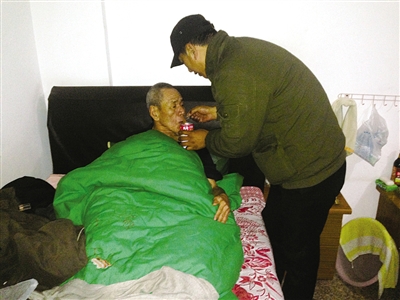 接触中,他得知老人患风湿性关节炎20多年了。看到老人脱下袜子,几根脚指头溃烂地粘在一起,王剑马上买来清洁液和消炎药,帮老人清洗伤口,还带着老人去医院,找中医为老人针灸,像亲人一样照顾着他。