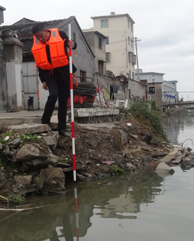 工作人员通过坐船下河使用测量杆及河岸人员配合测量相结合的方式,测量排污口的直径(长、宽)、离地高度,并观察是否有污水流出,收集相关基础数据。经过一上午的努力,普查员共认真排查河岸2000多米,发现排污(水)口37个,其中两个有少量污水流出。下一步,状元街道将继续加大排污口排查工作,尽快完成剩余10条黑臭沿岸排污口调查,为下一步工作早日开展争取时间。(通讯员王潇)
