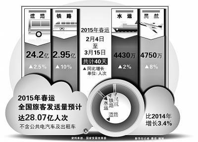 数据:预计今年春运铁路发送旅客2.89亿人次,同比增长10.1%,日均723万人次;民航春运客运量将达4752万人次,同比增长8%。平均每天有近7000万人乘坐各种交通工具出行。