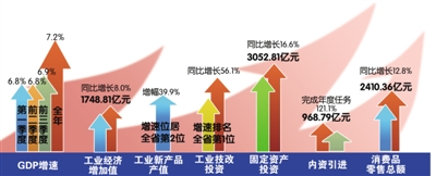 去年一年,就7.2%的GDP增速而言,与全省GDP的增长差距分别比2012年和2013年缩小了0.6个和0.1个百分点。从经济发展趋势来看,去年一季度和上半年GDP均增长6.8%,前三季度的增速上升至6.9%,截至去年底增速达到7.2%,全年经济增速呈现“低开、稳走、向好”的趋势。