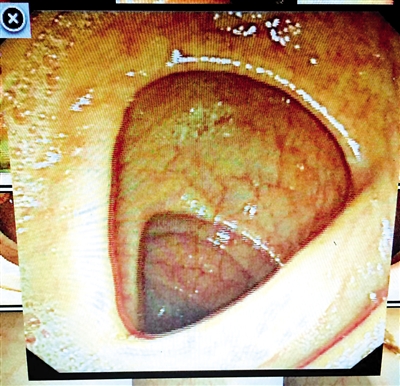 肠镜下看到的正常结肠。孙余丹摄