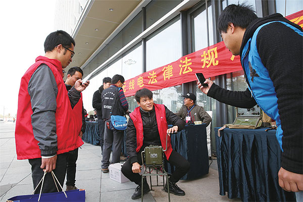 昨天上午,来自我市的近140名业余无线电爱好者齐聚龙湾万达广场,进行无线电管理宣传活动。