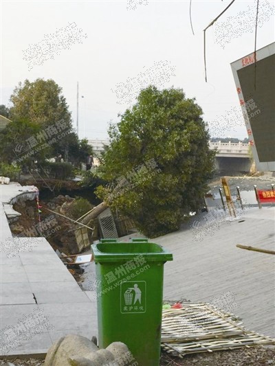 乐清一小区临河广场坍塌 居民怀疑是河道清淤所致