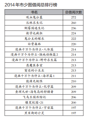 市少图公布的全年借阅数最多的图书前十名中,排名第一的是浙江少儿出版社出版的“查理九世”系列之一《吸血鬼公墓》,它被借阅了272次。市少图流通部负责人章素洁介绍,目前该馆有13本可流通的《吸血鬼公墓》,按推算,这13本书平均每17.5天就被借阅一次。目前该图书馆每次借阅的时间为22天,可续借两次。也就是说,这本书被读者借去很快阅读完就还掉,很快又被别的读者借走。