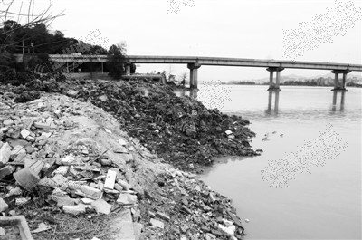 偷倒的建筑垃圾已经延伸到了江里。金鱼 摄