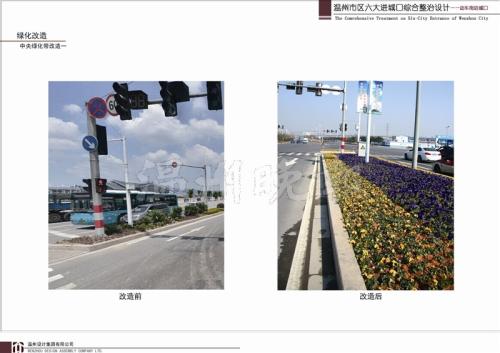 据住建委相关负责人简要介绍道,六个进城口有各自的改造提升亮点。其中高速东进城口机场大道(东至耐宝路、西到汤家桥环岛,总长6.4公里)路段上多处增加了非机动车道,并以彩色沥青进行区分;高速南进城口温瑞大道(南至沈海高速高架、北到瓯海大道高架,全长约5.7公里)路段上,将原有0.8米宽的中央绿化带拓宽成2.8米,并种植了小乔木、彩化树等植被;高速西进城口104国道(东至江湾路、西到山后路,全长约1公里)这段路进行居民区改造,将原本杂乱差的小区住房进行统一刷漆;动车南站进城口宁波路(南至工业路、北到瓯海大道,全长约1.1公里)段进行绿化提升等。