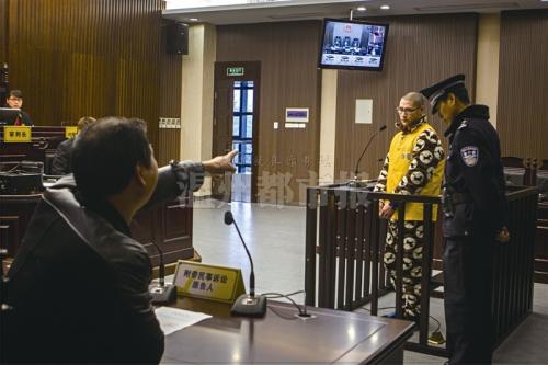 昨天上午9时50分,温州中院第四审判庭,身穿黄色马甲囚服的周某被法警押上被告席。