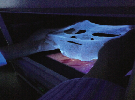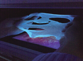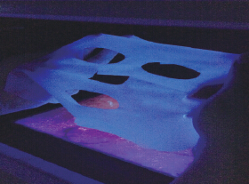相关研究人员表示,生活中常用到的查看真假纸币的小验钞笔、验钞紫外线灯可用来鉴定面膜,把面膜放到黑暗处用它们来照射,看是否散发蓝色荧光。