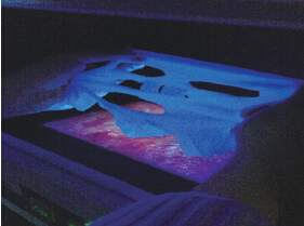 实验原理:紫光分析仪能够发出各种波段的紫外光,而荧光剂在紫外光照射下能发出蓝光。如果被检测物品在紫光分析仪下,呈现蓝光,则表明样品上含有荧光剂。