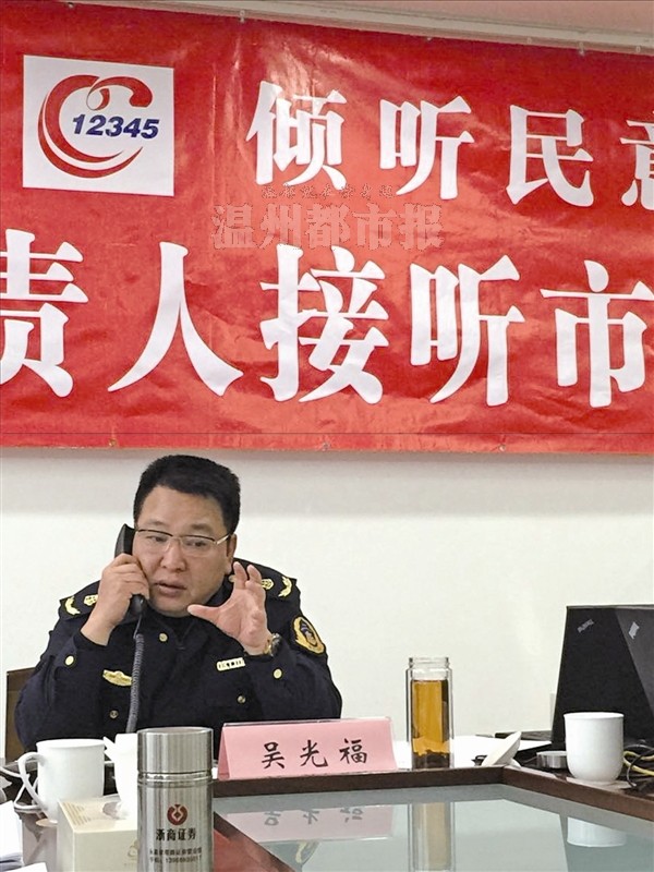 | 图为吴光福在接听市长专线。 |