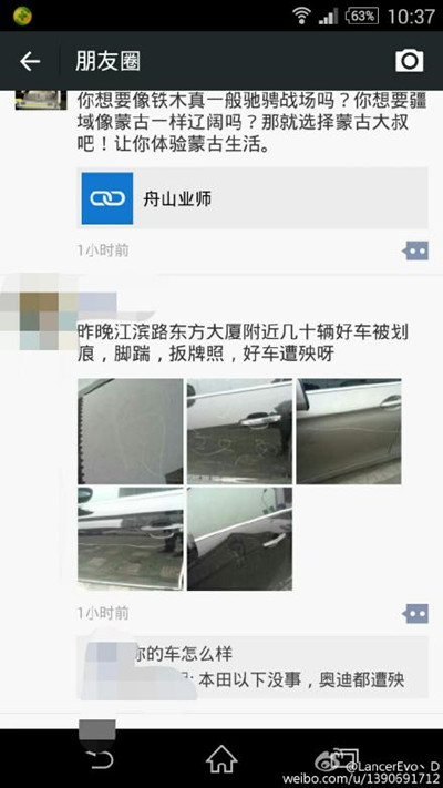 网友在朋友圈爆料称好车遭恶意损坏