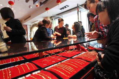 市区黄金销售柜台的一位工作人员告诉记者,黄金饰品并不等同于投资金条和贵金属纪念币,其首要的属性是佩戴,消费者一味苛求金饰的含金量其实是一个消费误区。