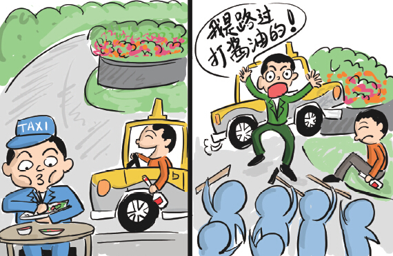 苍南的徐某做梦也没想到,自己原本喝完酒坐出租车回家,不料却引发了一场大闹剧:他打车时,刚好碰上司机吃饭让自己稍等,这时他发现钥匙在车上,于是突发其想,竟偷开出租车回家。不料车开出几百米出了事故无法动弹,此时一名代驾司机路过帮忙。在移车时,两人又被赶来的出租车司机打了一顿,闹剧的结果是徐某不仅把自己送进了看守所,而且还面临“二进宫”。