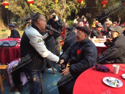 高深在演唱时与台下老人开心互动。金灵乐摄