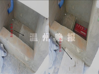 1月16日,执法人员在瓯海区梧田街道东垟东路65号店查获了一批假烟。而这些假烟就藏在卫生间洗脸盆底下的地砖下面(如左图),一条暗道内居然藏了近20条假烟,如果不是几块地砖之间留有细小的缝隙,恐怕谁也发现不了这个“暗格”。