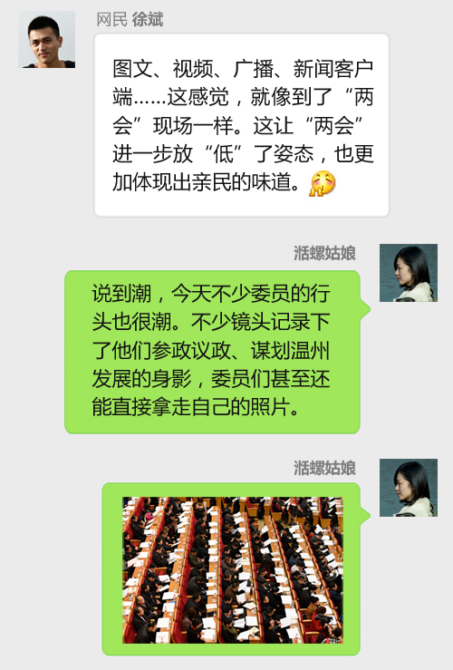 温州“两会”,大家都在聊什么?温网君推出“两会朋友圈”特别策划,通过小编湉螺姑娘的“朋友圈”、“微信圈”,为您换个角度读“两会”。