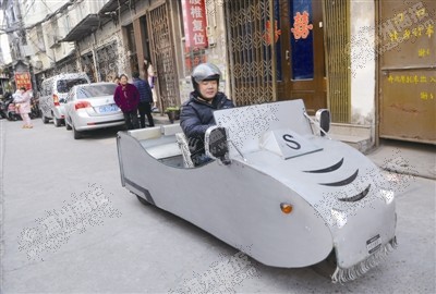 为了省钱,林先生从废品站寻找能用得上的材料,花了七八个月的时间,完成制作。整辆车的成本算下来也就两三千元。