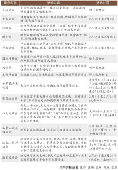 昨天,北京市公园管理中心发布春节游园活动预告,羊年新春,市属公园及中国园林博物馆将联袂举办多场新春游园活动供市民在京欢度春节。